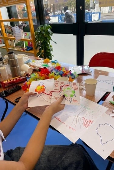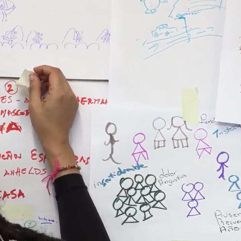 El proceso incluyó diversas actividades semanales orientadas a la recopilación y mapeo de relatos de vida y experiencias migratorias de 25 participantes, entre personas residentes en Londres y colombianos retornados al país.